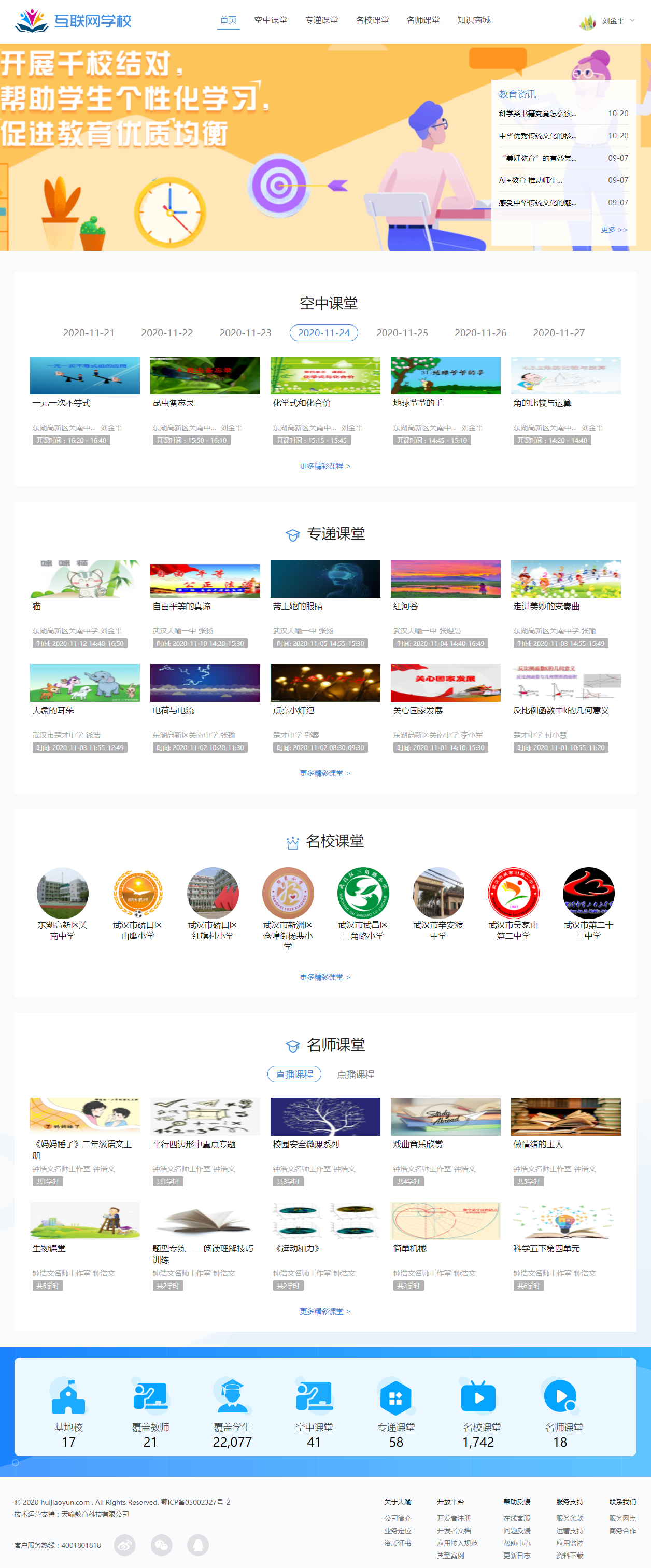 互联网学校是基于互联网+教育应用理念,以远程教育教学信息化技术为载体,通过千校结对、空中课堂、同步课堂、名师和名校网络课堂等形式,构建的区域统一的虚拟网上学校。